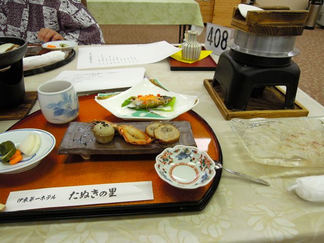 2度あることは3度ある? 3度目の正直! さあ、どっち!? どっちの乗車ショー!! 今度こそ乗らねばなるまいと固い決意をしたにもかかわらず、ホームに滑り込んで来たのはリゾート列車。シートの仕様も違えば、窓の大きい事や車体の重厚なデザインは、見るからに特別列車。しかもお名前を「黒船電車」と申しまして黒い車体にゴールドで伊豆急行と書いてある。 オババ脳 → (これは違う、特別料金がかかるであろうし“黒船”というからには下田まで連れて行かれる可能性大) しかし、乗車時間は刻一刻と近づいてコイツがいたら私たちが乗る予定の庶民電車が入構できないだろうが! ちょうど車掌さんが通りかかったので聞いてみた。 ぬぁ〜んと!!ただの普通列車だという。慌てて車内に飛び込んでナイスな席をゲット。今しがた一緒にホームに居た人々は置き去り、っていうか、どこへ行くのかも知らない赤の他人引きずり込むわけにいかんでしょ。 私たちオババ連は興奮状態で「良かった良かった」と、「2本やり過ごした甲斐があった」と、失敗を手柄に置き換えて自ら讃えあった。 発車時刻が間近になってアナウンスが流れ、ホームにいた人々がドッとなだれ込んで来た。う〜ん、残念ながら海側の窓に向かって座る席はすでに満席なのだ〜。 自画自賛オババ連はジッと窓の外に視線を投げ掛けたまま、口は動かし続ける事20分、伊豆の海はチラリズム、あとは山ばかりで下車でございます!(えっ!?)だって、今日の宿泊先はココですから。 まずはホテルに荷物を預け、駅前の温泉街を見て回ろうと意気揚々と歩き出した。 ここはシャッター街か!? あまりの淋しい町並みに、かつては年がら年中お祭りのような人出だったこの町を驚きながら散策した。 さて、市内観光の目玉のひとつに地元で人気の老舗「スウィーツハウスわかば」でソフトクリームを食べる目論みがあった。 ちょっと聞いて! 私は行程表に「創業60年」って書いてパフェやサンデーの写真を添えていたのね。 行程表をちゃんと読まないオババ連のひとりが60種類食べ放題と勘違いしてたのだ。オババ連最年少の私は叱り飛ばしてやりました。だってドデカイ声で「え〜、食べ放題じゃないの〜?」 シャラ〜ップ!! 毎度のことながらオバサンの声のデカさにはさすがの私もグロッキー。 ※ って、アンタもそうだ!という苦情は受け付けておりませんのであしからず。 んで、待望のスウィーツがド〜ンとテーブルに置かれ、いざ三流グルメブログのために! あ、あれっ? アハアハアホッ! さっき、ホテルに預けた鞄にデジカメ入れたまま来ちゃった〜。 え〜っと、出発してから1枚もグルメ写真ないんですけど?ヾ(;´▽`A`` しっかし、美味しかったわぁ〜。みなさんも是非検索してお立ち寄りくださいませ。 5時も近づいて、開いている数少ないお店のシャッターが閉まり始めた。 おまんじゅう屋さんに聞くと5時閉店のお店が多いんだとか。ひょぇ〜、それこそ昔は夜の温泉街を浴衣でブラブラするのも楽しみのひとつだったのに・・・。 お店も閉まる時間とあらば、そろそろお部屋へ行こうかね。 チェックインの時、浴衣の柄を選ぶんですけどね、「なんでもいい」と言いながらしっかり吟味するしたたかさを発揮するさすがのオババ連。 主犯の私はちょっと心配に。だって格安もいいとこ、素泊まりのようなお値段で、それもポイントで購入、オ○ケの出そうな部屋だったどうしよう・・・。 新しさはないけど広〜い!10畳と6畳の2間に幅広のL字型縁側、海も見えたよ〜。これはかなりのお得感。 温泉も堪能し、部屋は合格、ならば料理は?う〜ん、かなり心配になってきた。あの宿泊料でどんな料理が出てくるのやら 三流グルメブログ? やっと出たよ、料理写真! 見えにくいけど、写真右の釜飯の手前にヒラメのお造り 写真中央、初めて見た赤ちゃんサイズの伊勢エビの鬼殻焼 その向こうはカマの煮付け しいたけは裏にして焼き始め、ヒダに玉ツブの汗が出て来たらひっくり返しますネ 飾り切り人参を見て、芝刈り機の歯を思い出す! 板さんの演出にボンビー感覚が・・・リアルさにリタイア1名 んもうっ、柔らかくて美味しいのに〜 わいわい、ペチャクチャ、お料理を堪能するうちに釜飯が炊きあがり、美味しそうな釜飯に蟹汁と・・・、その頃にはデザート諸共、写真?なんのこと〜?? というわけで写真アリマセン! お腹もパンパン! 部屋に戻って、まだ喋る、まだまだ喋る。ふと時計を見たら9時。 折しも今夜のお天気は晴れ。 歩いてすぐ、タクシーならワンメーター。 すっごくきれいな幻想的世界! ホタルまつり最終日ですから「是非行ってみてください」 せっかくの地元情報をゲットしたにもかかわらず、 終了時刻は9時でござ〜ぃ!! これで終わり? んな、わけがない!(笑)