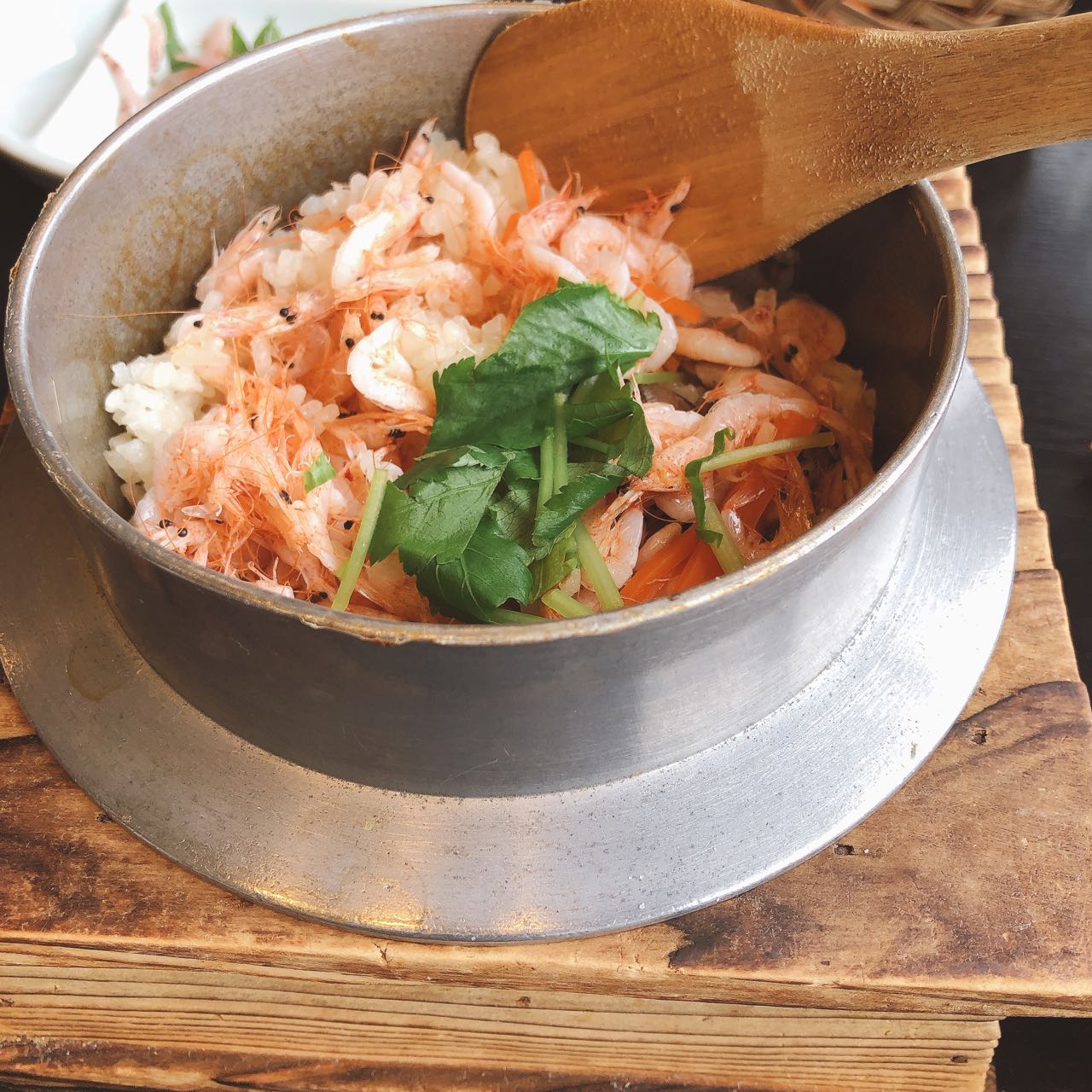初めて食べたよ、サクラエビの釜飯〜♪♪