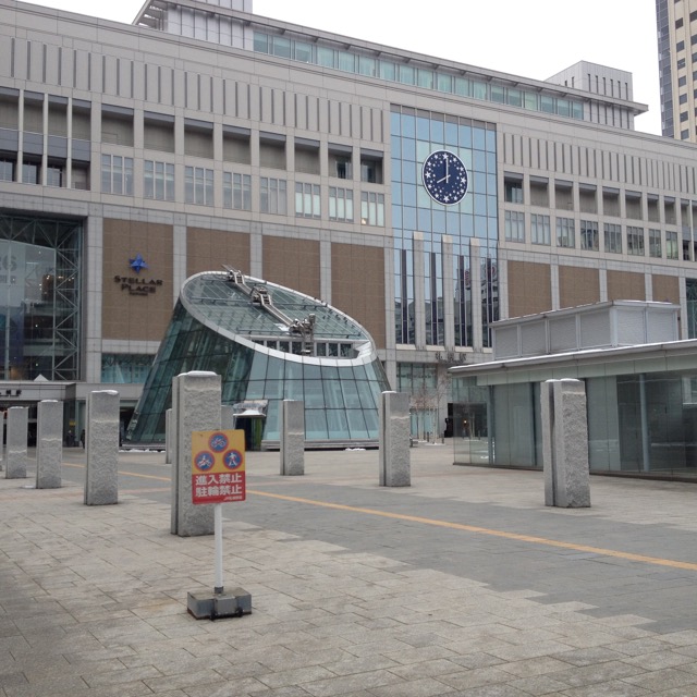 これ全部(右端が写ってないど〜!)、お代わり自由だって言われたけど お腹いっぱいで無理〜 食後のコーヒーを飲んだら、いざ出陣。 地下道をやめて地上へ。 あ〜、気持ちがいい!ってくらいで極寒でもなかったなあ。 夜はじゃんじゃん雪が降っていたのに、思ったほどの積雪は見当たらない。 と、思ったら、やっぱり雪だらけ。北海道だしね。 いやいや、 バスの中は暑いのなんのって!