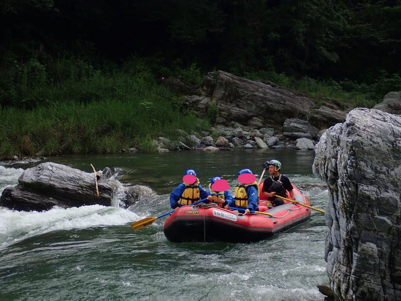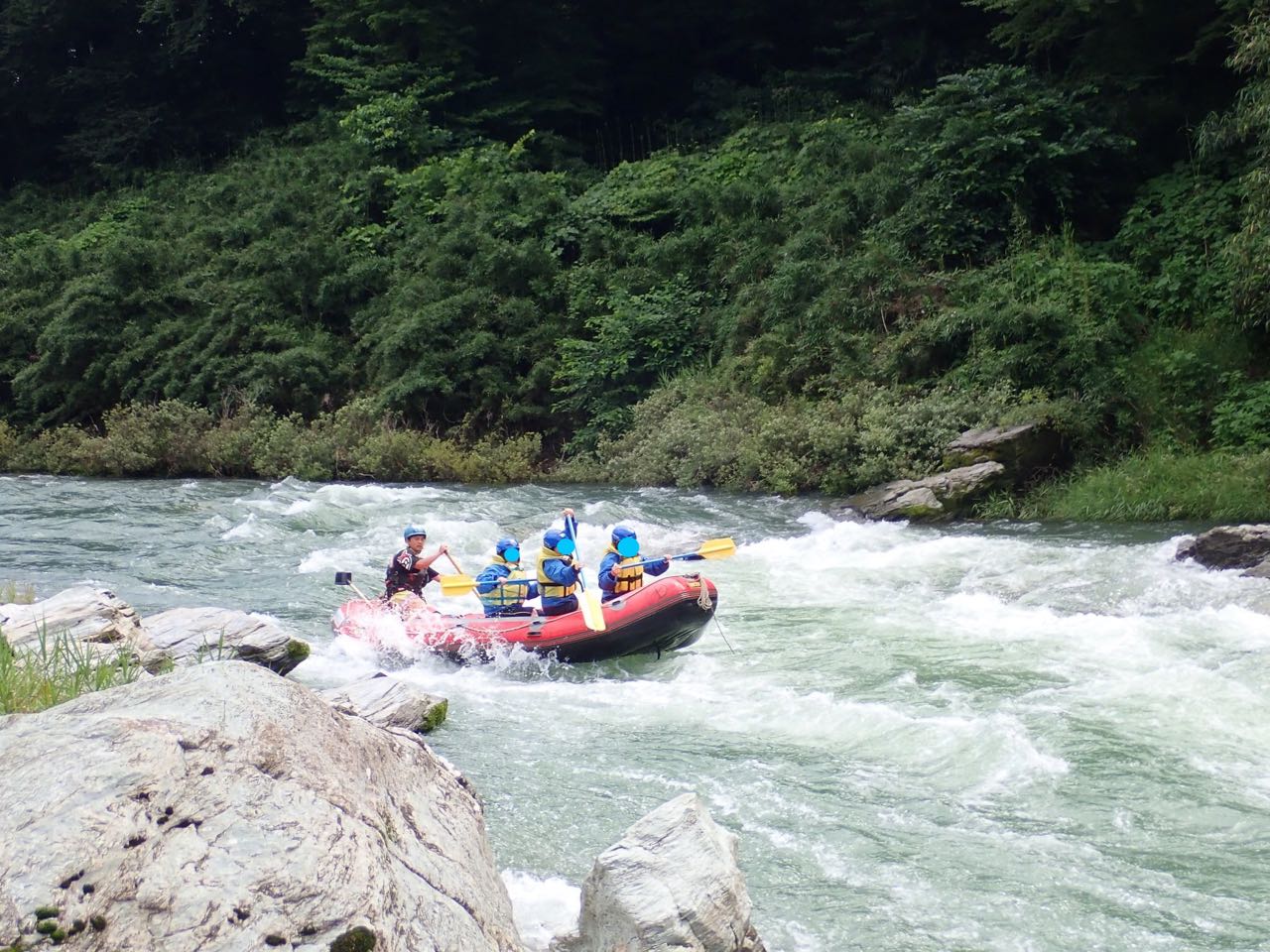 花の降参トリオ珍道中2 花の降参トリオ珍道中3 今年の7月は長雨と台風襲来で夏らしい日差しがなかなかお目見えしなかったねえ。 道中3日間の予報は安定の雨だったけど、パラパラ程度でラフティングの時には真っ青な空がお出迎え。 それでもこんな状況で貸切だって! 説明を受けたら、ブハブハ笑いながら更衣室へ。 ラフティングに必要な水着やタオルを忘れないよう注意喚起した張本人が・・・ トートの中を見てひっくり返った! 一式全部忘れたおバカ見参!! 預けた宿まで歩いていけないことはないけど、うげぇ〜 なんと貸切状態ゆえの車で送ってくれる親切さ!感謝感謝大感謝〜☆ しかしインストラクターのKAYOさんは下着でもいいを連呼・・・ い、いや、あのさ、短パン持ってないからパンツマンになってまうがな(><) 忘れん坊将軍助かりマンモス(感謝!) で、身支度を整えたらいざ出発。 水着の上にシャツと短パン、その上にフリースを、さらにヤッケ? ラストにライフジャケットの重装備で蒸し風呂のように暑い熱い厚い〜 ベースからバスに乗って川べりへ。 レクチャーを受けたらいざ出陣〜! 長瀞の「瀞」とはこんなはず〜 しかしですね、ラフティングというからには、 ついでに滝登りもどき? 暴れん坊将軍 見参!! カヌーとごっちゃな認識の人 約1名!?(笑) PR |