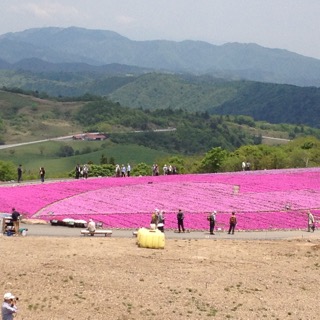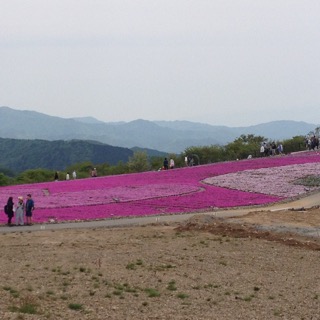 何日も前から見頃の時期を見定めていたけど、ドンピシャ見頃となった休みの日。 運転所はキミだってわけで、なまわさびドライバーは久々に長距離運転のハンドルを握ることになった。 スマホのナビもセット完了。 天気予報は上々。 しか〜し、山の上は地上よりも10℃くらい低いというじゃんか。 上着1枚!の記述から冬の服装で!?調べれば調べるほど迷いまくる。 半袖シャツにカッターシャツを羽織って、バッグの中に薄い綿セーターとウインドブレーカーを丸めて突っ込んだ。 出発時間は何時にするべ? 駐車場が混むらしいから早く? そんなに早く行ってもねえ・・・? 二転三転した挙句、7時に決定〜 ナビでは2時間ほどで到着の予定。 それがアータ、着いたのはまもなく10時だつぅ〜の! 下手にうろ覚えの道を知ってたためにナビの示す方向が信用ならねえ? 右へ曲がれと指示が出れば、「えー、まじ?」 こっちだよねえ?と左に曲がり、直進かと思えば曲がれってよ!てな手遅れ指示で突っ走った。 おまけに途中でトイレ休憩も取らねばならない頻尿世代?いえいえ、トイレも大渋滞らしく手前の道の駅で済ます生活の知恵ざます。 おかげさまで?どんどん到着時間が遅くなり、第1駐車場などおこがましい第6駐車場。 でもね、シャトルバスがじゃんじゃん出てるから、第1駐車場の端っこへやっとこさ駐めるより第6駐車場で正面玄関前まで行けちゃう方が楽だったかも。結果オーライってね。 さて、週末時にはリフトへ乗るにもかなり待つというが、この時はすんなり。 上へ行ったら寒いのかな?セーターを着て、いざリフトへ。 時折吹く風が冷たい。 寒くなる前にとウインドブレーカーも着込んだ。 芝桜って種類によって咲く時期がずれ込むから6割から7割咲きが見頃なんだって。 写真で見ると満開でしょ〜。 近くから見ると案外スカスカしてたりするから少し離れてみたほうがキレイ。 手前はこれから広げていくのかな? 展望台のベンチへ座って・・・ あっつ!! 直射日光がジリジリ、あっちぃよ。 こんなに重装備で来たのに、最初は肌寒かったのに。(爆) リフト券往復で買ってよかった〜! 歩いて下ってもいいかな〜なんてちょっと思ったけど、冬場はスキー場になる勾配をこの暑さじゃ死んでまうよ。 下界へ戻って、出店の前を行ったり来たり。 蕎麦とフランクフルトを頬張って、お土産売り場へ突撃。 びっくらこいたぜ〜。 こま1号2号が小さかった頃にスキーで何回か来たけど、こんなに混雑してるお土産売り場見たことない。 「ダイヤモンド味覚賞」「最高3つ星受賞」に惹かれ、お土産は買わない主義のオイラ、買っちまっただよ。南部せんべいをうすーくしてりんごをマッチングさせたようなお味? お腹もいっぱい。 さ、これからどうする〜? え!? 長野県じゃん!!