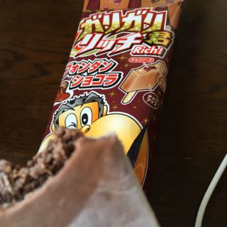 嫌いじゃないけど、好きかと言われれば・・・あんまり って、基本のソーダしか食べたことないんだけど。 コーンポタージュとか話題の味が出ても、敢えて買おうとは思わなかったガリガリ君だけど ついに6本もまとめ買いするという暴挙に出た! ワタクシ社長夫人の御用達スーパーで1本¥48円、税込みでも¥52つぅ〜破格の安さだったから。しかも、味はチョコ。 昔、純チョコってアイスがあったけど、そんな感じじゃない?と思っての大人買い〜 侮ってたわぁ〜 めちゃうまっ!! しかも、全身ガリガリ君じゃない。 調べてみると、 「チョコレートアイスの中にクッキーを混ぜ込んだしっとりした食感が特徴の濃厚なチョコかき氷を入れ、さらにチョコソースが入ったアイスキャンディー」だって。 チョコはスペイン産の原料だとか スペインってチョコレート発祥の地なんだって? 『ガリガリ君リッチ フォンダンショコラ』 ぼやけてるけど、どうにか三層なのはわかるっしょ? 歯型のついたところがソースかしらん?にゅ〜って伸びる感じ。 これなら「レアチーズ」とか「黒みつきなこもち」とか、おいしいに違いない・・・ てか、1本¥48 10本くらい買うべきだったかも? ガリガリ君に合格の称号を与えますっ!? かじりかけ見せるなつぅ〜の!(笑) にほんブログ村 にほんブログ村 ランキング参加中です。 大人買い?子供買い? 欲望のままに意見する私に応援のポチお願いします。 |