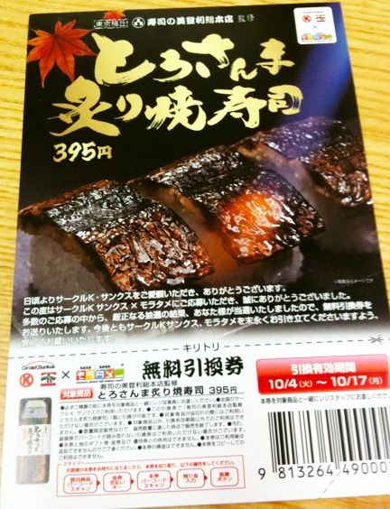 モラタメさんで当たったの!! ![]() 大きな声じゃ言えないけど、オデ・・・青魚は苦手。 なら、なぜ応募した?? 「そこに無料券があるからよっ!」 こんないい加減なヤツに当選させたと後悔させては先方に申し訳ないです。 大丈夫、 いえね、オデだってさんまの塩焼きは普通に食べてる人種ざんす。 食べた事ないさんまのお寿司、興味津々。 甘めのタレと山椒がついてます。どうやら醤油をつけるのではなく、これをかけるらしい。 ああ、断面からさんまの血合いが見えてる〜。 何を隠そう血合いは全然ダメ。 切り捨てアラフォーがいい歳こいて何を寝言?と言われそうだけど、もう今更食べようとか好きになろうなんて労力使えないんだわ。 しかし、こま父の「全然気にならないよ」との一言でトライ!! あれ?あれれ! イケルじゃん!! (切り捨て)四十にして食わず嫌い克服!? 「とろ」というほど脂がすごくもない?が、香ばしく炙られた皮が焼さんまだ。食べやすいよ、これは。 ごちそうさまでした。 今夜はこれで夕食おわり・・・ ラクチン! Σ(゚Д゚;エーッ! ジョーダンですって、他にもちゃんと買いました。 このとろさんま炙り焼寿司はね、人気商品らしくすぐ売り切れちゃうんですって。 現に2度も足を運んで結局予約で取り置きしてもらったの。 さすがのオデもコレひとつだけいただいて手ぶらでは帰れないわっ! でもね、保冷ケースに「なまわさび様」ってお名前シールを貼られてポツンとひとつだけ取り残されてたの・・・。有名になれたかしらん? ついでに電話番号もバッチリ公開されてたけど誰からもかかって来ないわ、変ね。 青魚で頭も良くなったことだし、(ーー:) 次はお顔に磨きをかけようかしら? 次回は顔写真付きで取り置きされてもいいようにね。 資生堂【リバイタル グラナス ファンデーション】400名様モニタープレゼント にほんブログ村 ランキング参加中です。 年金解約の次は当選とモニターに期待するオデに 応援のポチお願いします。 【各コース最大5組様】茨城体感ツアー☆参加者大募集!! |