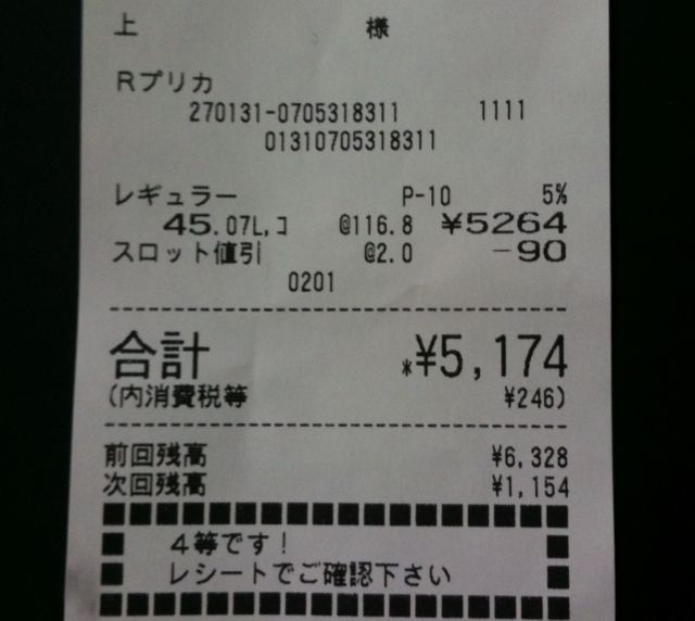 ここのガソリンスタンドさん、プリペイドカード使用で値引きがあります。2万円のプリカで1リッターあたり3円引き。