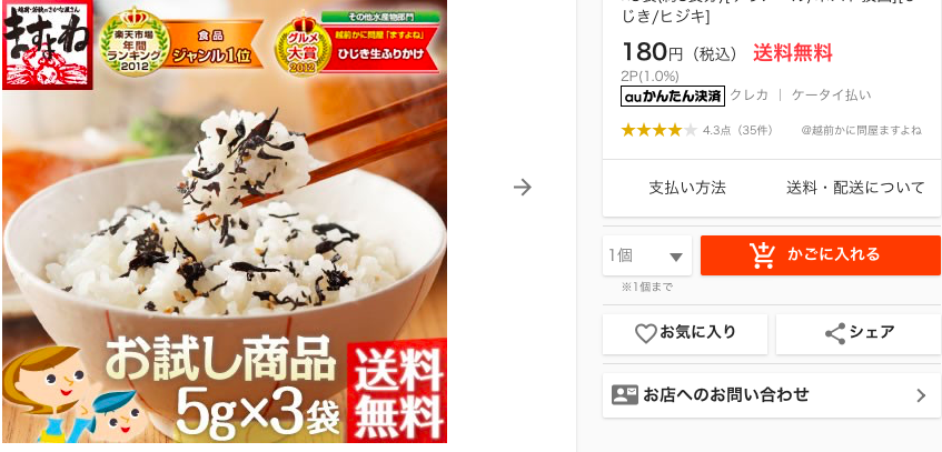 守銭奴なまわさびにも拍車がかかり、買い物をしてお小遣いをGETする手法を身に付けた。 まるで開拓者のような口ぶりだけど、本当は先人の後追い!? 能書きは置いといて、 Wowma!(ワウマ) 読みにくっ! ここはKDDIが運営する総合ショッピングサイトなんだけど、新規会員登録&お買い物で¥756がGETできちゃう! それはココから ↓ ↓ マイボンバー ![]() マイボンバーはブログがなくても大丈夫! トップページから『Wowma!』と入れて検索してもいいし、上部の「プログラム検索」をポチッとすると上から4番目くらいに出てくるよ。 この広告、auでなくても大丈夫だけどアプリからの申し込みは却下なので注意! Wowma!で買ったのはコレ 個人的には「高っ!」な、ふりかけだけど美味しいんだな〜 「送料無料 お試し」等で検索して安い順にすると¥1やら¥25やらの品々もあるけど、 あえての太っ腹ショッピング!(おいっ) マイボンバーの本人アフィには、購入価格より高い報酬のスキンケア用品や健康食品もあります。カード発行で高額報酬GETもあり。 ¥756 ー ¥180 = ¥576 大人のお小遣い・・・(爆) 千円の道も一円からって言うじゃない〜(残念〜) にほんブログ村 ランキング参加中です。 千里?一里も踏破できそうにない私に応援のポチお願いします。 PR |