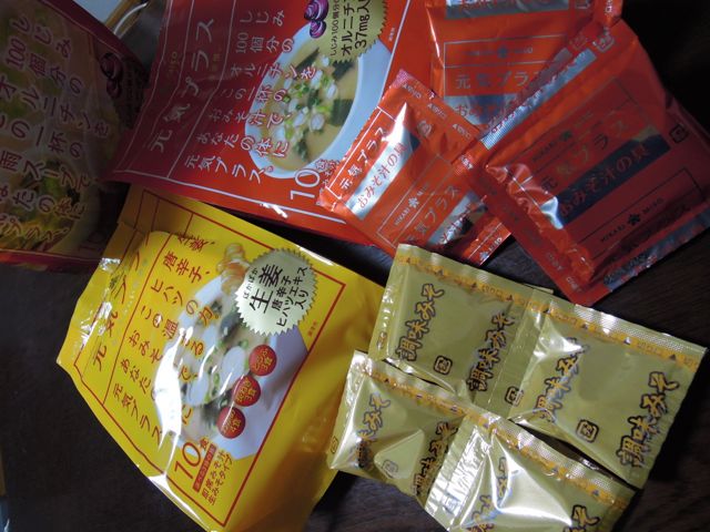 我が家の長男が許可なく!オルチニン満載のしじみのおみそ汁をうまいうまいとグイグイ飲んでます。無くなっちゃう〜!(買えよっ、てか!) 生姜の風味がたまらない、私はこっちにするかな、と・・・。 戸棚に空袋を入れとくな〜っっ!(怒) とまあ、こんな風景の我が家です。 ひかり味噌さん、イスラム圏にも味噌を広めてるんですよね? そのうちシンガポールやマレーシアのホテルはみそ汁が普通〜の風景になったりして。待ってますよ〜! |