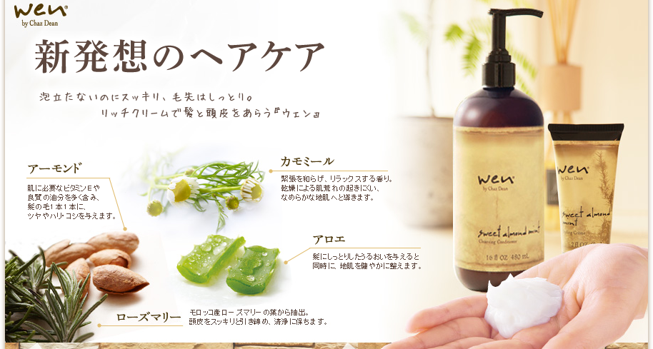 つまり、実質無料!! ちょうどシャンプーが切れそうだったんだぁ、ラッキー☆ 掲載されてた商品はコチラ ↓ 11/11(日)23:59まで限定で アメリカで大ヒットしているサロン発のオーガニックヘアケア! 新発想のヘアケアシステム【ウェン】 泡立たない? リッチクリームで洗う?? 外国製品で、アーモンドの香り??? う〜ん、どうしよう・・・ ネットサーフィンでクチコミチェックしてみたけど、悪くない? おおむね、好評っぽい。 え〜いっ、どうせタダ同然だ! 買っちゃえ〜〜〜 ポチッ え? ええっ? コンディショナー??? うっそ〜ん、私はシャンプーが欲しいのに。 こちらの商品は「クレンジング コンディショナー」という名で、シャンプーの位置づけみたい。“洗いながら潤いを与える”そうで。あ〜、良かった! 届くのが楽しみです。 どんな使い心地か、またネタさらししますね〜。 定期購入しない時は(記載先まで)停止の連絡をお忘れなくネ!