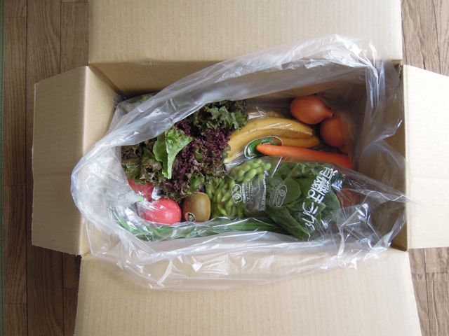 先日お知らせした、げん玉から購入で実質¥0でお試し出来るビオ・マルシェのお試しセットが指定通りの日曜午前にクール便で届きました。 有機玉ねぎ 2個(やや小振りながら実がしっかりしてて甘〜い!) 有機人参 2本(皮が柔らか〜い、生野菜サラダにもノープロブレム) 有機ニラ 1束(長い!50cmはある。風味が良いわっ、これ!) 有機サニーレタス 1個(結構な大きさ、食べ出があるし外葉まできれい!) 有機枝豆 1P (まだ食べてな〜い・・・) 有機トマト 2個(味が濃くてフルーツトマトみたい。しっかり熟れてる) 有機ほうれん草 1束(まだ、これからいただきマッスル) 有機キウイ 1個(ツブツブ感がしっかりして私好み!) 有機バナナ 1房(正直、フツ〜かな。もっと完熟したら美味しそう) これだけ入って、送料、税、込みで1000円は絶対安いっ!! 有機野菜をネット販売してる他のサイトとも値段比べしてみました〜。 おおまかだけど、やっぱ、どこも通常価格2千円前後かな。 人参、玉ねぎ、サニーレタス、トマトに、こま家の冷蔵庫で脱水症状を起こしかけてるキュウリをプラス、どっさりサラダを作りました。 翌朝分も残ると思ってたのに、 おめえら、食べ過ぎ〜!!