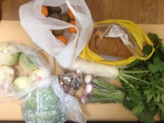 野菜欲しい?とラインが。 野菜高いじゃん!! 欲しいっ欲しいっ!! 慌てて顔を洗って出発準備だぜ〜 エヘへ、まだ歯も磨いてなきゃ顔も洗ってないつぅ〜午前10時の半世紀オバサン(オイッ!) ピンぼけでごめんあさ〜せ。 黄色の袋の中は味噌!手作り味噌が7kgぐらいあんじゃね? 甘味があって本当に美味しいずら。 しっかし、冷蔵庫入るかいな?(汗) 他にも梅干しやお茶と、毎度ながらこの御方はボンビ〜こま家の救世主なのだよ。 して、 こま父が出稼ぎから持ち帰ったお土産は・・・ ハイ、無言?のボンビ〜アピールで雇い主から持たせていただいたお土産。 さらに、 ワタクシが入手したハイライトなお品は!? 今夜は満腹祭りだぜ〜 なぜか食べ物ばっか〜(笑)