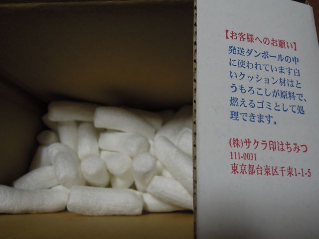 この声に、珍しく素早く反応した こま父。 「なになに?」 「なにか美味しいもの?」 相変わらず食いしん坊な発言だな。 箱を見せながら、 「とうもろこしが原料なんだって。」と言った私。 「おいしそ〜っ!!」 テンションMAXな声の こま父 ゲッ!Σ(・ω・;||| マジですか? 諸君、見たまえ! 燃えるゴミですがな・・・ あのね、私はね、肝心な商品の倍くらいの大きな箱が届いたんで、最初に 「こんなに大きな箱だよ。中は緩衝材がいっぱいだよ〜。」 って言いました。 それに対して「本当だ!」と、反応した こま父。 毎度ながら、人の話をよく聞かないで適当な返事をする男ざます。 こま父の「本当だ!」に対して「とうもろこしが原料・・・」と答えたら「おいしそ〜」ときた。 そんなに食べてみたいなら、どうぞ召し上がれ。 ( ̄∇+ ̄)v 届いたのは、 “サクラ印のカナダ産純粋はちみつ 800g” ↓ これはちょっと小さいサイズ はちみつはミネラルやビタミンがたっぷり含まれた天然の甘味料。カナダ産のこのハチミツはクセがない自然な甘さなんだって。 どれどれ? ミツ切れの良いワンタッチキャップ。 これが優れものでして、タラ〜ンと出したらバターナイフかヘラでシャッとカットするように! ばっちり液だれ(ミツだれか)しません。 ま、私はそのまま、タラ〜ンとしたところ・・・オヨヨン、止まれ止まれ〜、ぎゃ〜、スプーンでスパッとぬぐったところ、見事に成功したわけです。 何事も経験ですな、うむ! はちみつは消化吸収がとってもいいらしい。 このカナダ産純粋ハチミツは舐めてみると、ちょっと水飴っぽい。あっさりした甘みで今まで私が知ってる喉にカーッとくる甘さのハチミツとは少し違う。 砂糖でなく、このハチミツで生姜焼きを作ってみた。 どうよ、この照り!! 甘みも上品?ま、そこまで繊細な舌ベロは持ち合わせてないんだけど、美味しかったわぁ。 ワタクシの腕!かもね?(オイッ) つけ合わせは、とうもろこしが原・・・ ヽ((◎д◎ ))ゝ ひょえぇ~ こまっちゃうわ〜っ、明日の朝食はハニートーストに決定!!
