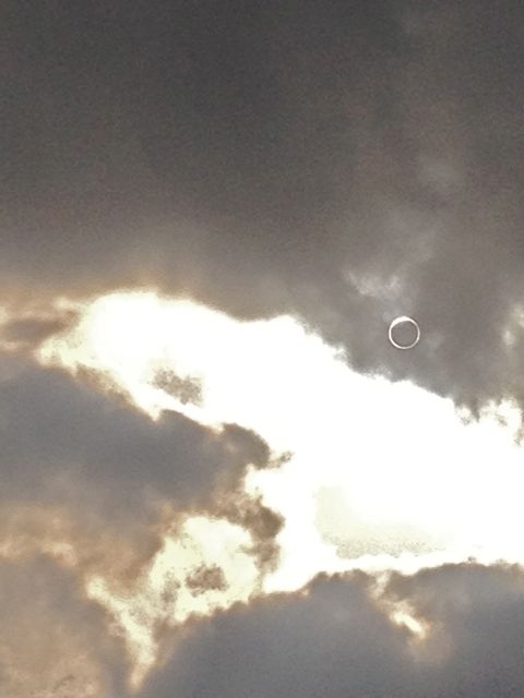 黒い雲で覆われた隙間から。 辺りはどんどん薄暗くなり、まさにムーミン谷!? 金環日食では暗くならないと聞いたが、大自然の演出によって素晴らしい金環日食を見る事が出来ました。
