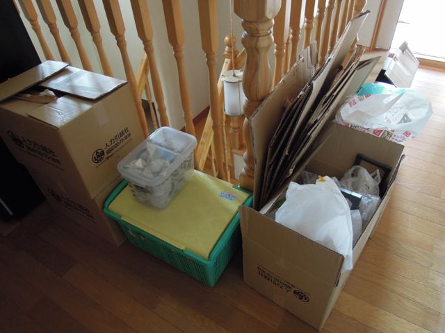 こま1号の部屋がやっと片付きました。 自惚れしてます? 「このまま、おうちでゴロゴロ生活もいいなぁ〜」とか、ふざけた野郎です。 自室は快適になったかもしれないけど、廊下が写真の通りです。 あと少しに見えるかもしれないけど、ほとんどが仕分けや分解が必要な厄介物ばかり。 ここに飲み終わったペットボトルまで放り込まれてるのを私は見た! この地域はゴミの細分別化にいち早く取り掛かったところで収集カレンダーを見てもざっと11項目に別れてる。 ペットボトルは本体と蓋の回収日が違うのだ。ツナ缶だって蓋はアルミで本体はスチールで(なんでよ?)分別必須。 DVDは破砕ゴミでプラじゃないよ。昔なつかしいビデオテープやカセットは埋立ゴミ。 紙パックのジュースに付いてるストローは破砕ゴミでストローの袋はプラスチック。 あ、お弁当によく入ってるバラン(緑の仕切りね)も破砕ゴミです。 ハッキリ言って、よくわからん! 収集の仕分けに関する小冊子が配られてるので、そいつを片手に仕分けるしかないな。 段ボールに押し込まれてる大量のファイル類、金具の部分と本体の分解はなかなか手間取って大変。少しくらいなら有料でも・・・(悪魔の声が囁く〜) ダメダメ、塵も積もればなんとやら、こま1号が来てから何かと出費が嵩んでる。 昨日だって!! とってもいい天気だった!!! 快晴だね☆ 夜になってチェックした売電は? 片付けすんのに エアコン入れんなっ!!! 8kgの洗濯機が埋まるほどの洗濯物は撤収済みであります!