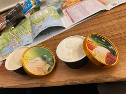 なので近くの居酒屋さんへ 豆腐サラダ頼んだら量が多いからハーフにしましょうかって。 ハーフでこのサイズ からあげも「ハーフにしましょう」ってな具合でご親切にありがと〜 商売っ気まったくないじゃんww なんとお値段もハーフで安っ!! ホテルに帰って ジェラート無料の太っ腹〜 朝食時にはそんなに強い雨じゃなかったのに チェックアウトの時には怪しげな風 奄美パークに到着した時はこれがスコールか!?の勢い ※ 駐車場や道路がこうなってるわけではありません。 ジェラートを食べに雨の中たどり着く 地元の方が降りすぎという!(えっ!?) こんなに長い時間 土砂降りなんて滅多ないとか? |